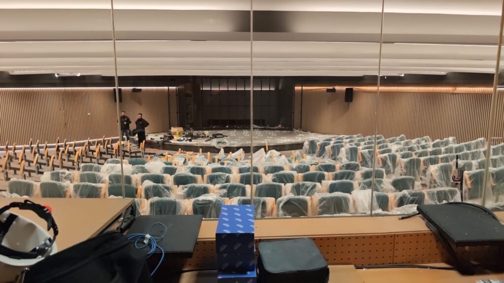 Aquesta arquitectura permet una segmentació precisa de l’espai (escenari, platea, passadissos, il·luminació tècnica, etc.) i una gran flexibilitat a l’hora d’adaptar la il·luminació segons el tipus d’esdeveniment: congressos, ponències, presentacions, actes institucionals o esdeveniments híbrids.